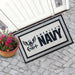 Welcome guests in true U.S. Navy style with this officially licensed 18”x30” USN doormat. Designed for both indoor and outdoor use, this durable mat features a bold, full-color US Navy graphic set against a two-tone neutral gray background for a clean, tactical look. Made from fade-resistant polyethylene fabric and backed with non-slip rubber, it stands up to heavy foot traffic while staying securely in place. Perfect for front porches, patios, garages, or man caves—this Marine Corps welcome mat is a must-have for any proud Navy veteran, active-duty Sailor, or military family.