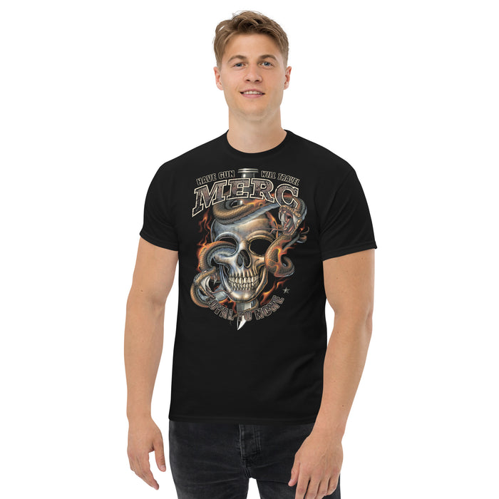 The 2nd Amendment “Merc, Loyal to None” T-Shirt is for the true lone wolf. Featuring a bold skull and snake graphic, this 5oz 100% cotton tee makes a fierce statement of independence and self-reliance. With the slogan “Merc, Loyal to None” emblazoned across the front, this shirt is perfect for those who answer to no one and value personal freedom above all. Durable and comfortable, it’s a striking way to showcase your attitude and support for the 2nd Amendment.