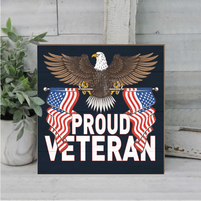 U.S. Proud Veteran 10 x 10 inch Wood Sign - Made In The USA
