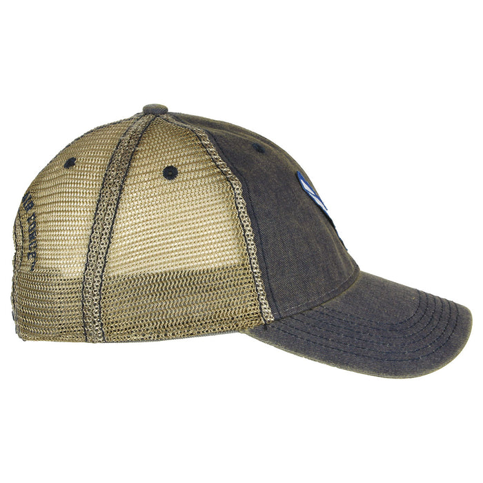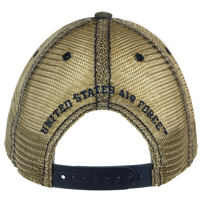 Embroidered USAF Logo on a vintage style trucker cap with softened mesh to keep your head happy. Snap back, one-size-fits-most.