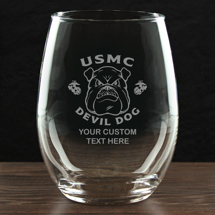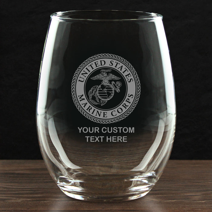 This officially licensed USMC 21oz stemless wine glass from 7.62 Design is an ideal enhancement for any bar collection, featuring a deep-etched design that's custom-crafted for each order.