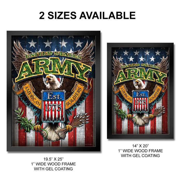 We believe our Fighting Men and Women deserve nothing less than the best and we've spared no detail here. Printed on high quality paper with a textured gel coating for a long lasting design. Hang this print to show your Army pride!
