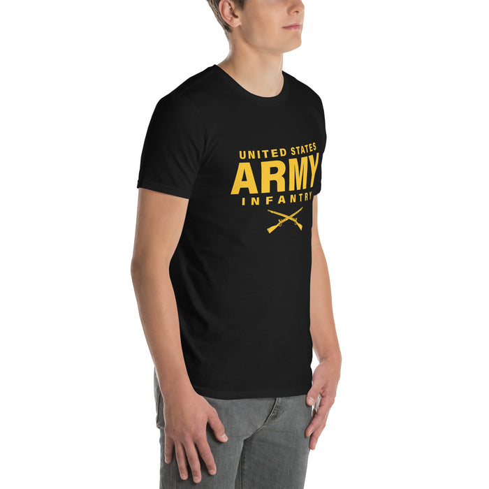 Show your infantry pride with this officially licensed U.S. Army Infantry T-shirt. Crafted from soft and durable ring-spun cotton, it offers all-day comfort with a classic fit. Featuring a bold Infantry graphic, this high-quality tee is perfect for active-duty soldiers, veterans, and proud supporters. Whether on duty or off, wear it with honor and represent the backbone of the Army. Follow the call—Infantry leads the way!