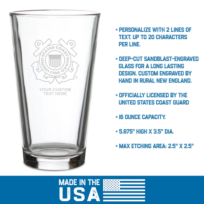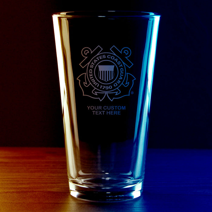 This 16 oz Pint glass by 7.62 Design is a great addition to any bar. Customize your glass with up to 2 lines of text. Deep etched for a long lasting design. Custom etched for each order.