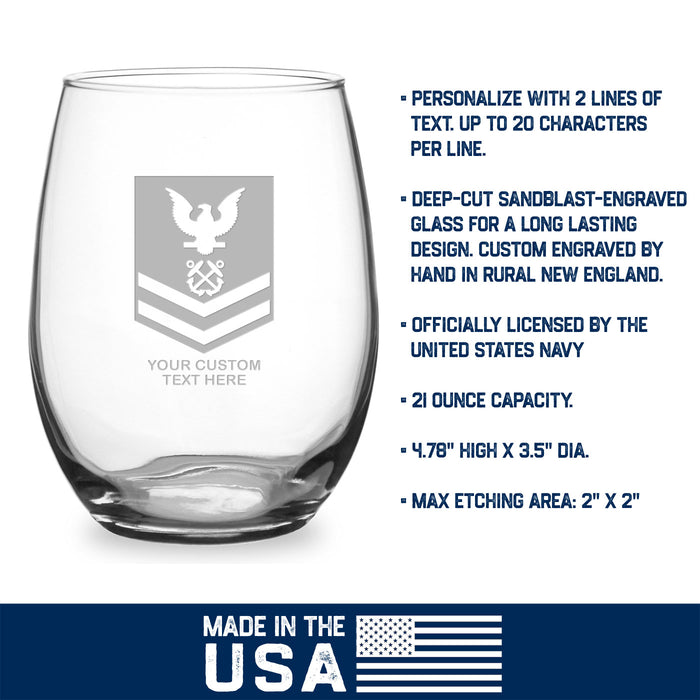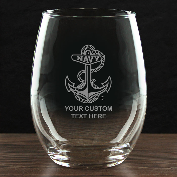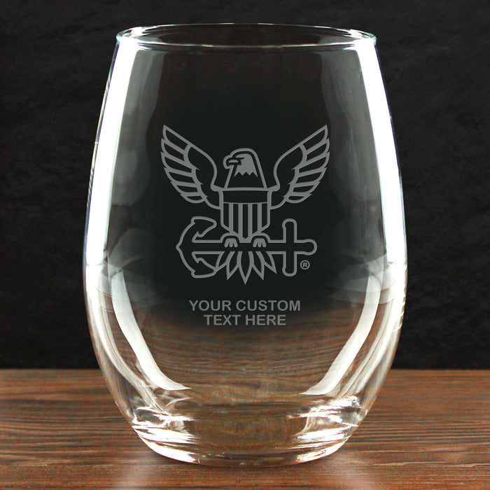 US Navy 'Build Your Glass' Personalized 21 oz Stemless Wine Glass