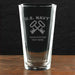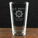 This 16 oz pint glass by 7.62 Design is a great addition to any bar. Customize your glass with up to 2 lines of text. Deep etched for a long lasting design. Custom etched for each order. It's a great way to add a personalized touch to your drink ware, with a design that's sure to impress for years to come.