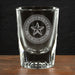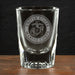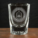 This 1.5 oz shot glass by 7.62 Design is a great addition to any bar. Deep etched for a long lasting design. Custom etched for each order.