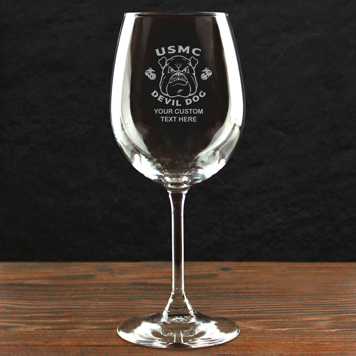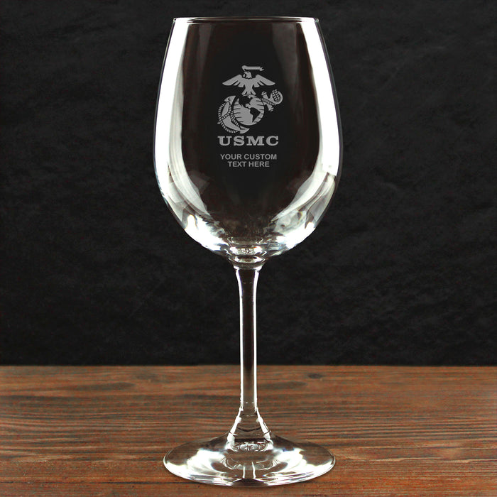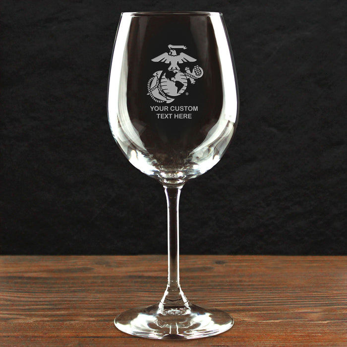 This official USMC etched wine glass is perfect for commemorating your service. It is handmade in the USA with a design & message you choose. Individually etched for each order, enjoy your favorite beverage with pride and sophistication.