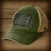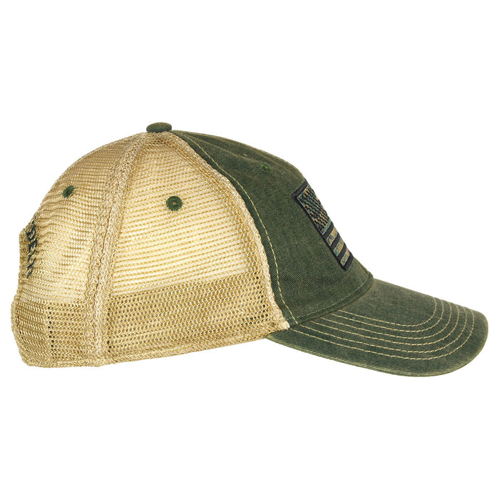 Embroidered Woodland MARPAT Flag on a vintage style trucker cap with softened mesh to keep your head happy. Snap back, one-size-fits-all.